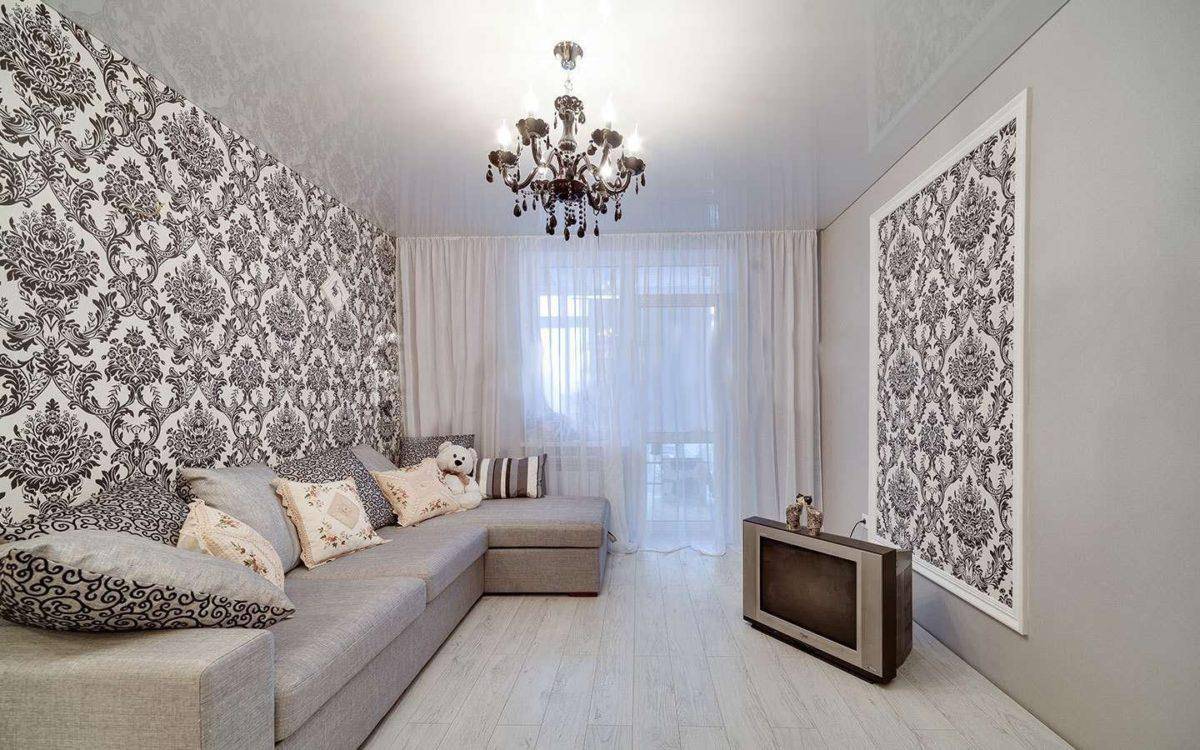 Самый распространенный – оклеить одну из стен, тогда она будет акцентировать на себе внимание