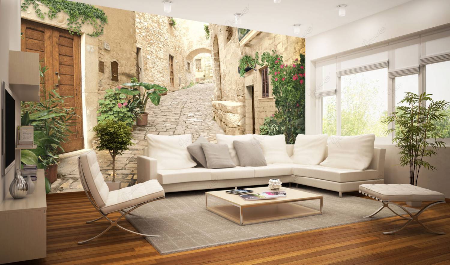 Так, самым простым вариантом, который используется, как правило, при оформлении небольших квартир, являются фрески-обои, или, точнее, фотообои, дизайн которых выполнен в духе старинной росписи, своеобразные картины на стене. Такие обои можно использовать не только на стене или потолке, но и украсить ими, например, шкаф-купе в прихожей, встроенную мебель для кухни. Современная технология изготовления таких фресок предусматривает использование цифровой печати, и позволяет создавать обои самого оригинального вида, открывает возможность создать даже самый безумный дизайн: на фотообои можно перенести любые понравившиеся варианты пейзажей — виды природы, города, портреты, цветы, картины известных художников… Стоит отметить, что, помимо обычных фресок-обоев, существуют специальные влагостойкие фотообои, которыми можно декорировать, например, участки кухни, детской, прихожей, или другие части квартир, которые могут быть подвержены воздействию влаги, включая стену ванной, душевую комнату.