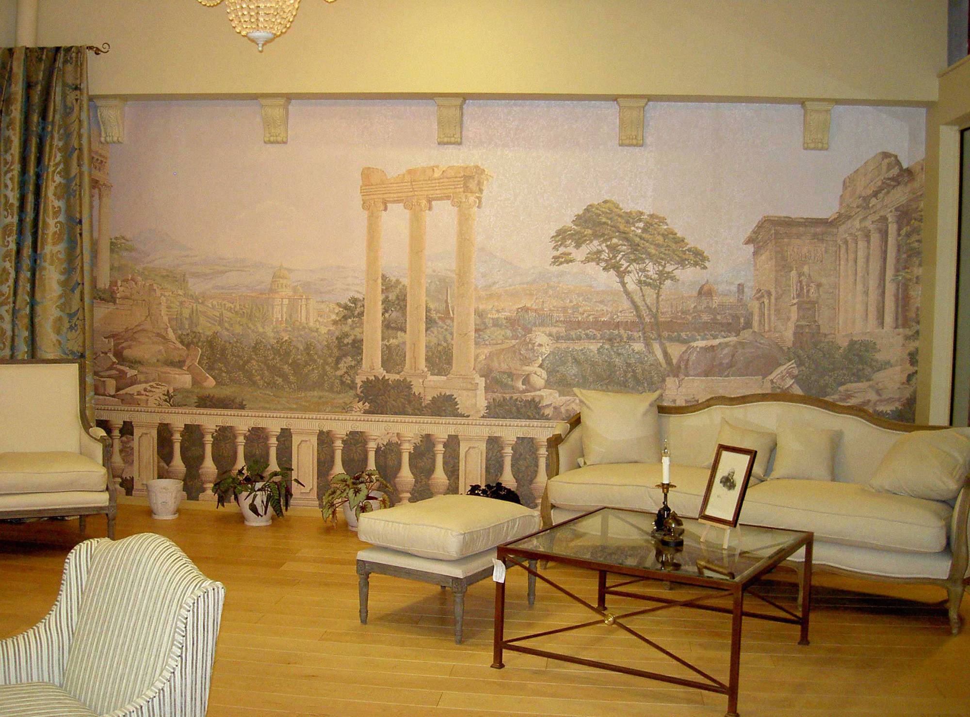 - для украшения различных архитектурных деталей, например, ниш, выступов, колонн. При правильном подборе изображения можно добиться невероятных эффектов. Например, при изображении в нише распахнутых дверей балкона с видом на море можно создать ощущение, что квартира, в самом деле, расположена на берегу.