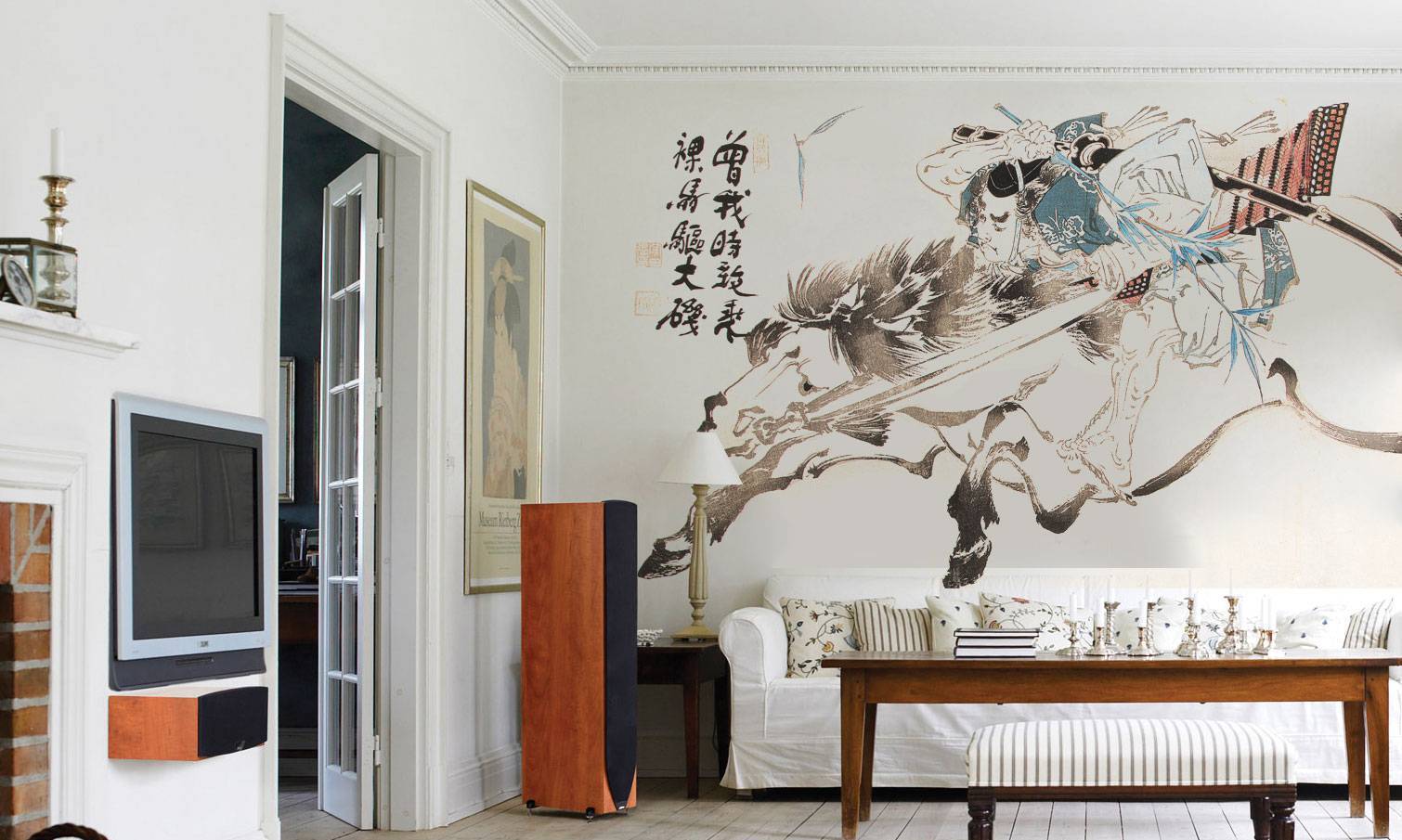 - восточный интерьер можно украсить изображением характерных животных, растений, храмов и типичных домов;