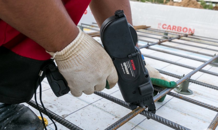 Скреплять арматуру лучше специальным пистолетом
