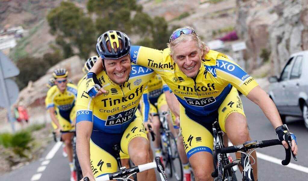 - велокоманда Tinkoff-Saxo, которую в 2013 Олег Тиньков купил за 4 млн евро у её основателя Бьярне Рийса;