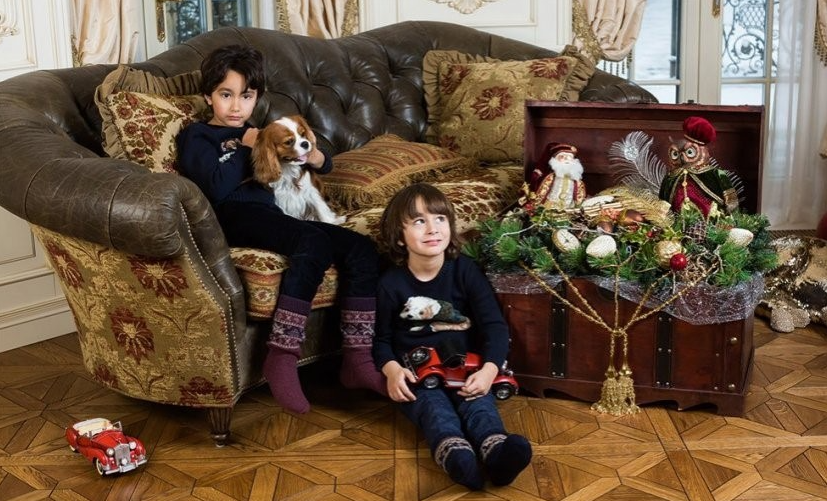В комнате установлено несколько диванов в комплекте с журнальными вставками. Один из них отличается от традиционной мягкой мебели. Верх диван обит кожей и украшен каретной стяжкой. Другая часть отделана износоустойчивой тканью с цветочным принтом. Подушки также украшены принтом. Это любимое место сыновей Зары.