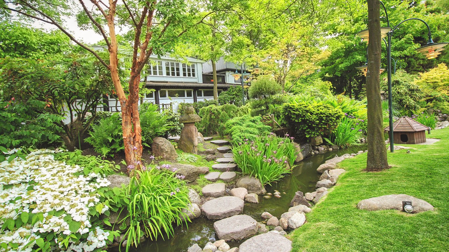 Ключевые элементы. Дизайнеры используют натуральные элементы: камень, щебень, песок, дерево. С помощью валунов и камней можно воссоздать природные локации ― горный склон, ущелье, каменный ручей. Дорожки на участке выкладывают из камня, гальки; популярная идея ― сделать ступеньки из больших плоских камней. Завершают образ северные растения: хвойные и карликовые деревья, клумбы из многолетников, злаковых культур.