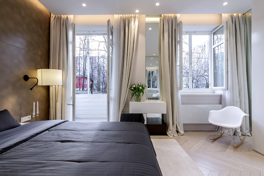 Гибкий карниз в интерьере с нестандартным оконным дизайном