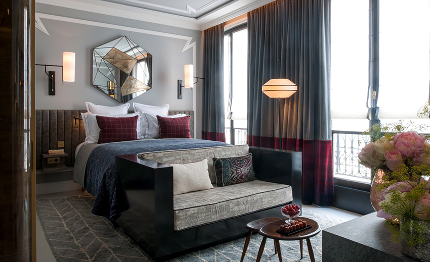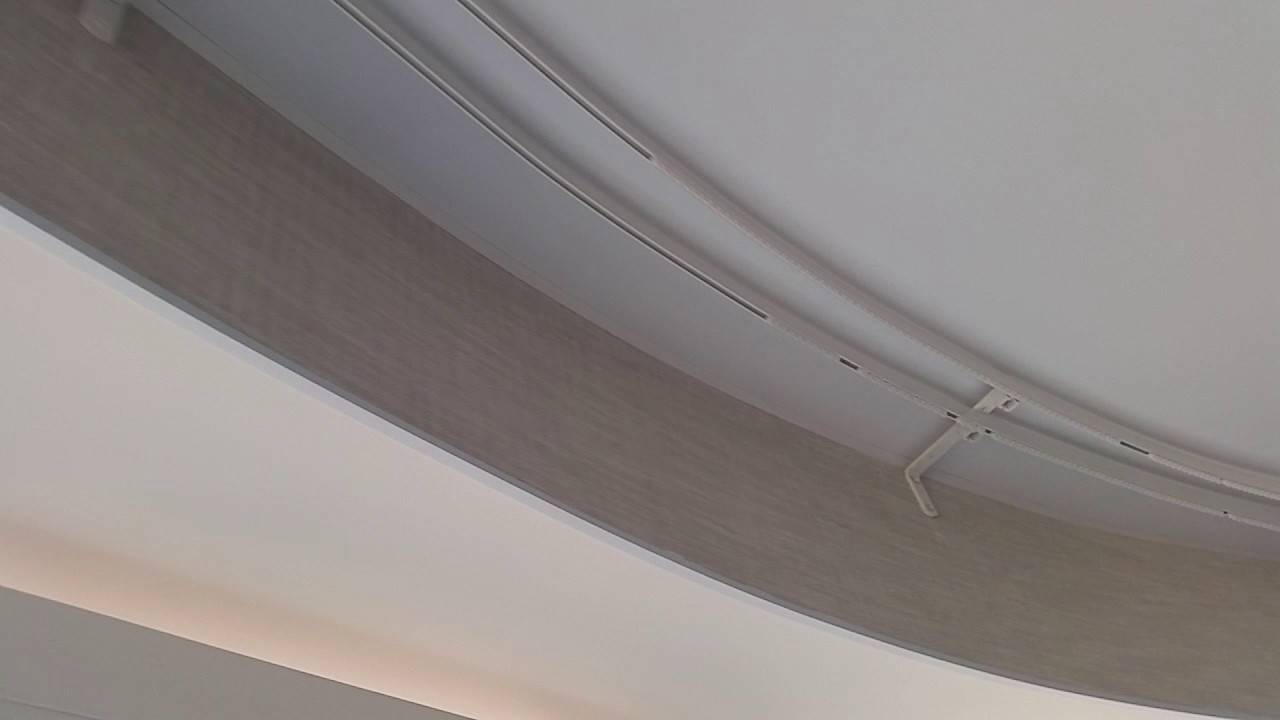 В помещениях, имеющих кривые сложные линии, потолочные карнизы используются для дизайнерского размещения штор по всему периметру помещения.
