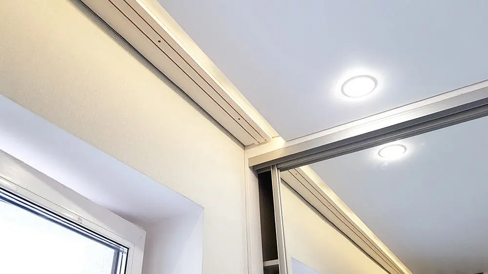 Минус только один — установку карниза для натяжных потолков следует предполагать еще на этапе отделки, чтобы мастера во время работы сразу смонтировали нишу или поставили закладную.