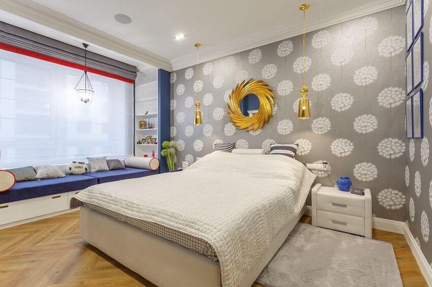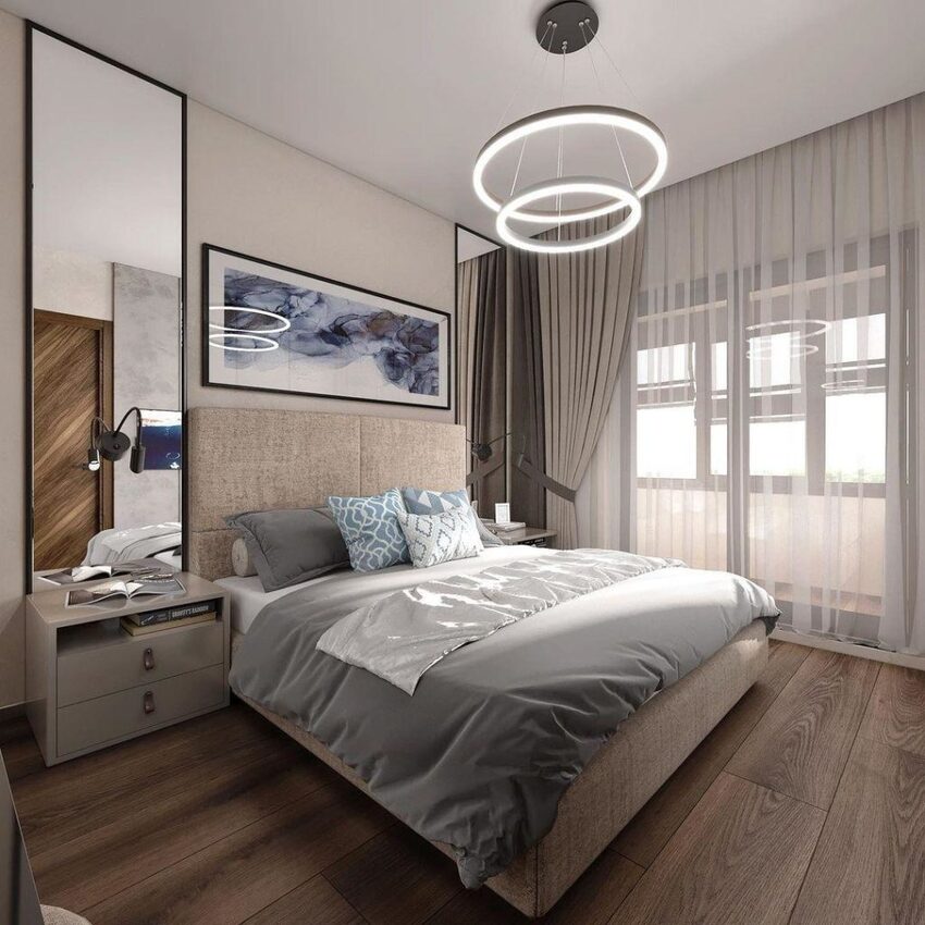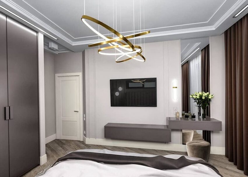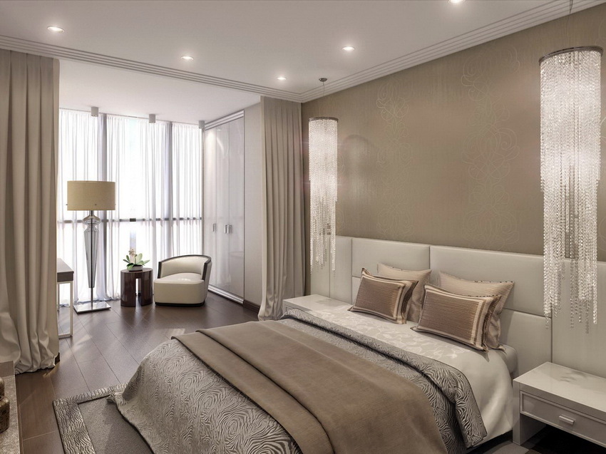 Люстры размещаются в центре помещения. Для маленьких спален наилучший вариант – припотолочная люстра.