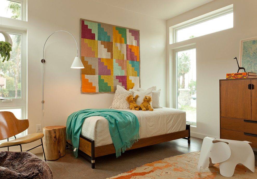Винтаж. В этом стиле «фишкой» года дизайнеры обозначили сочетание гобелена в изголовье кровати и такой же ковровой дорожки в комнате на полу. При этом стены должны быть в пастельных тонах и однотонными, чтобы подчеркнуть тканые нюансы и не дать ощущение излишней пестроты, пол должен контрастировать темным.