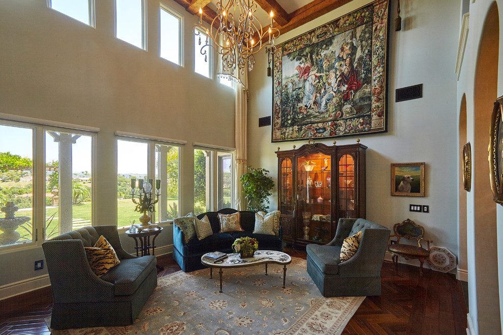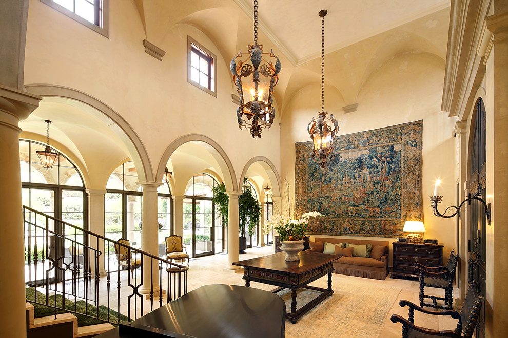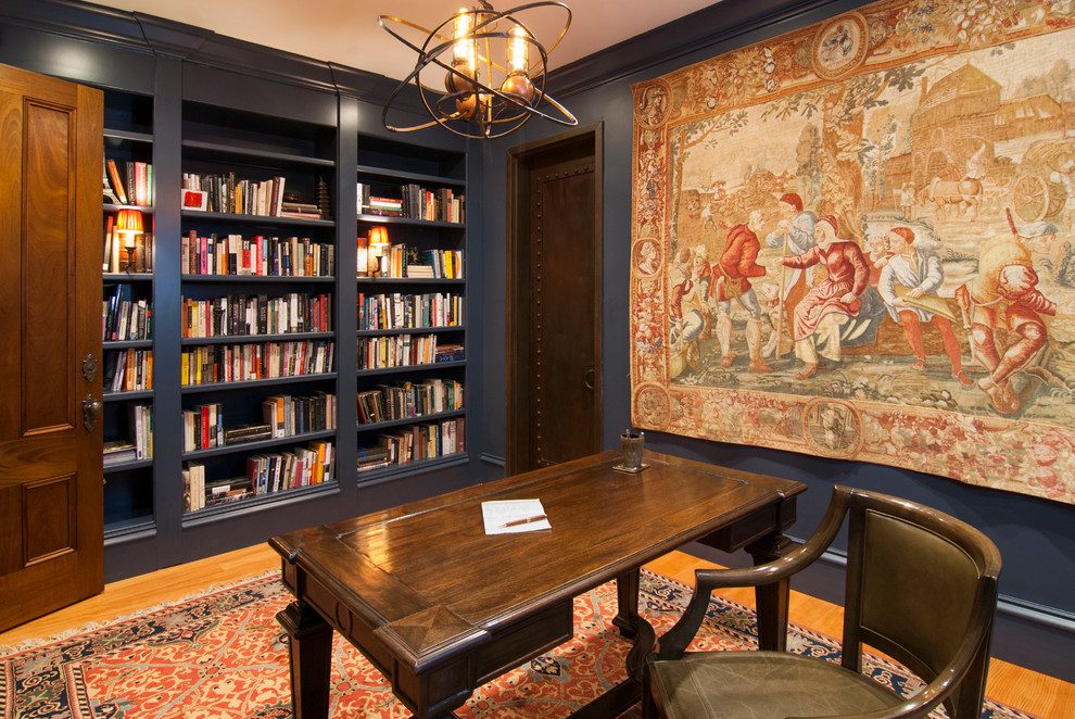 Восточный орнамент гобелена органично вписывается в солидный интерьер дома