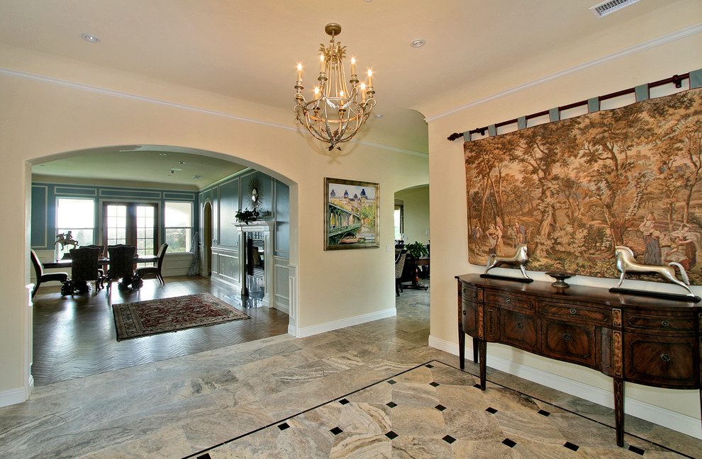 Еще одним популярным способом оклейки гобелена является оклейка под деревянные панели. То есть верхняя часть стены — гобелен, нижняя — деревянная панель.