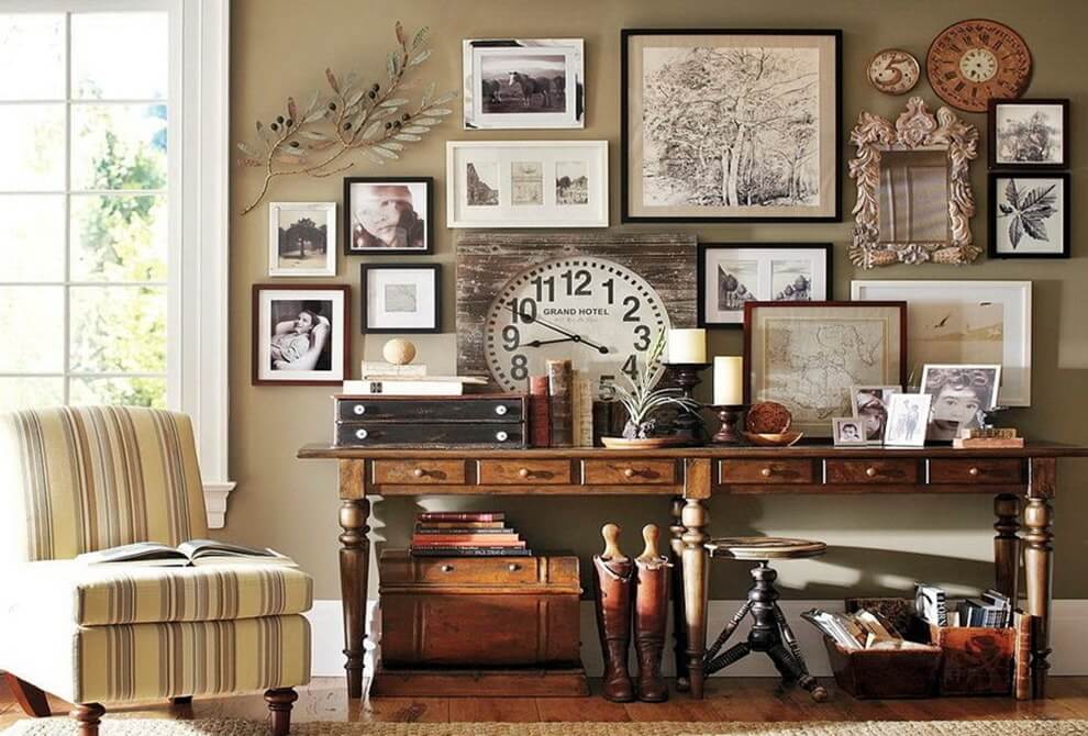 Большое панно во всю стену создаст акцент и потребует более тщательного выбора аксессуаров. Если же для декорирования выбраны несколько спокойных небольших полотен, можно не опасаться, что такое изобилие «перегрузит» гостиную.