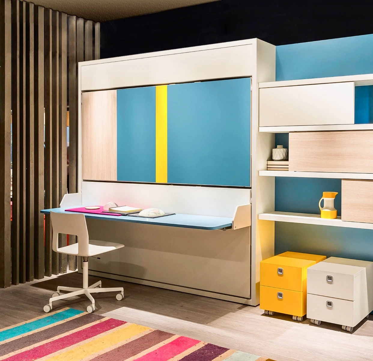 В интерьере спальни с гостиной площадью менее 15 кв. м будет уместна мебель-трансформер. Эти изделия экономят пространство, так как занимают меньше места.