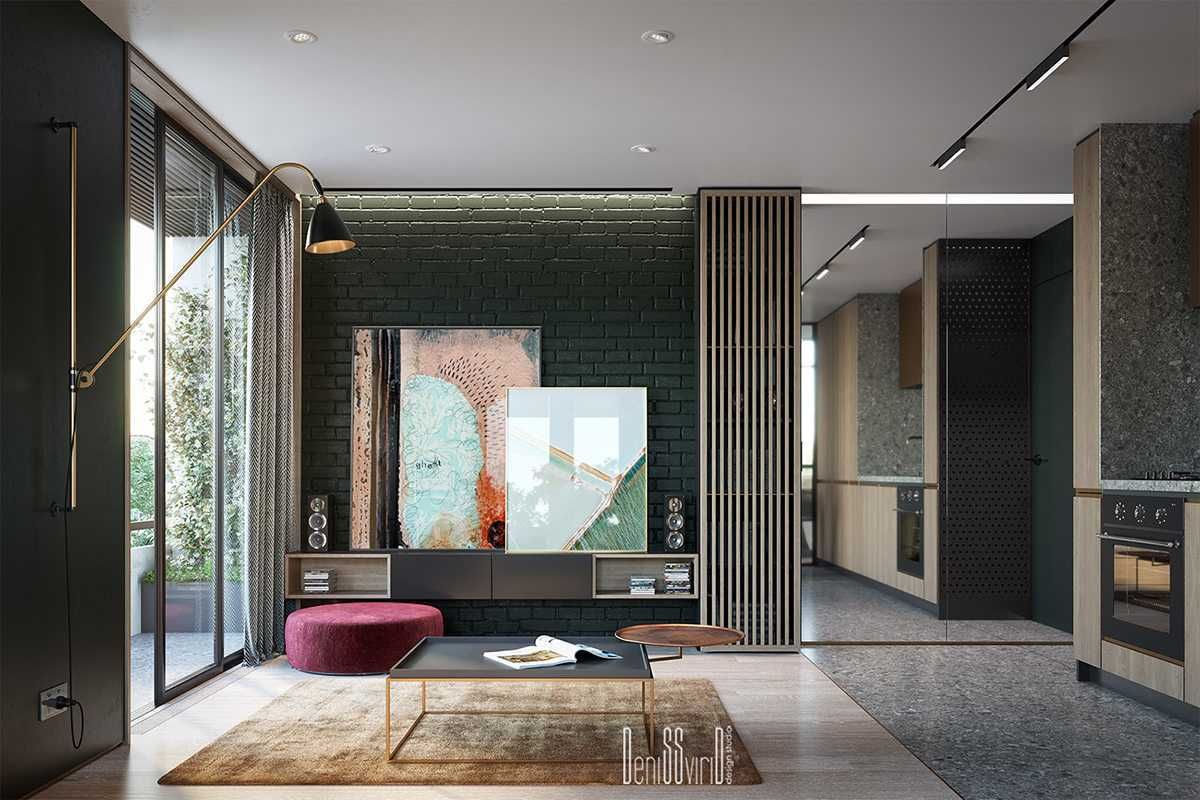 В любой гостиной есть диван, он занимает много места и является координационным центром комнаты или её части, но, что, если его полностью убрать и заменить более простой мебелью со схожими функциями. Подобное решение разработал Денис Свирид для небольшой студии.