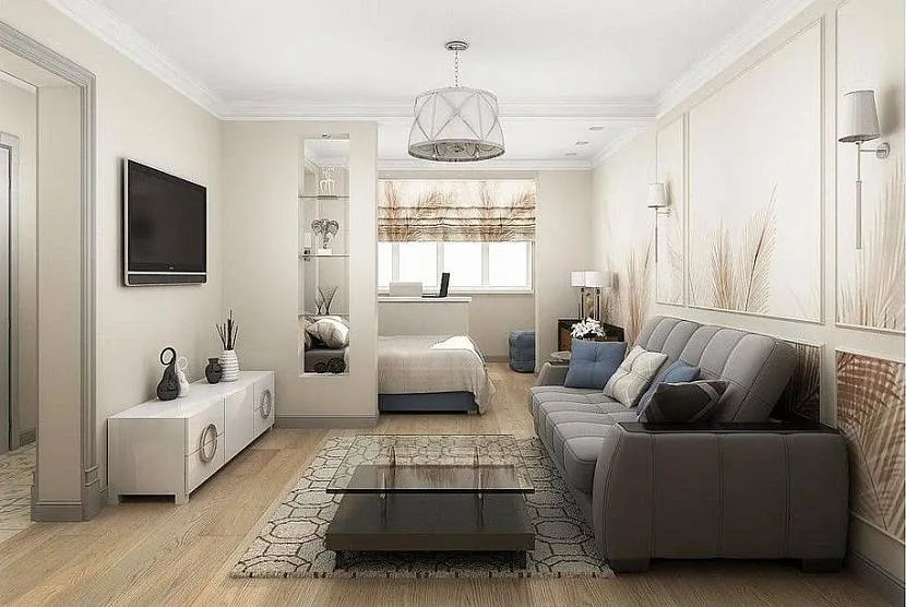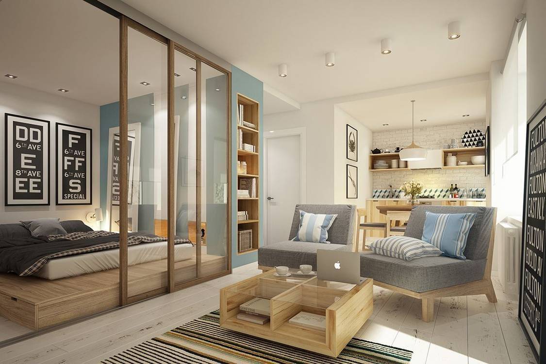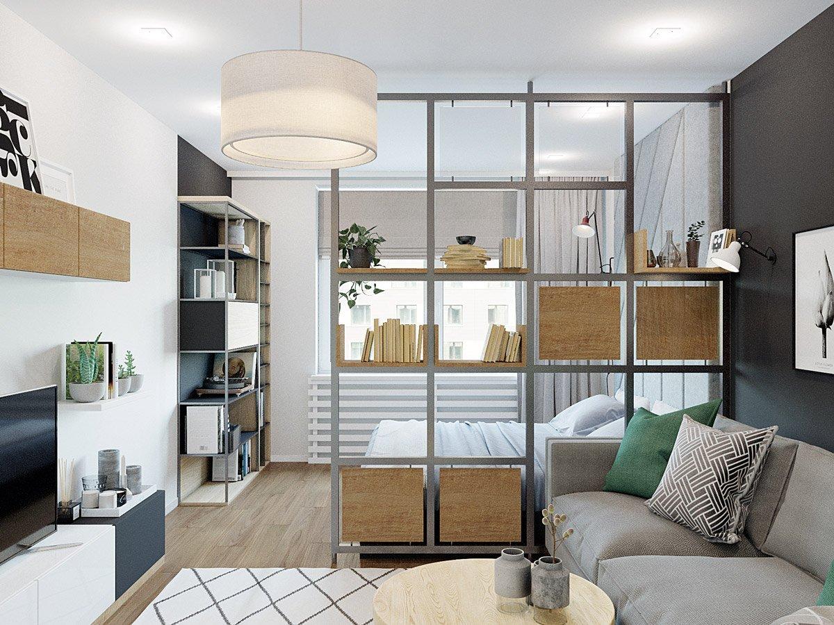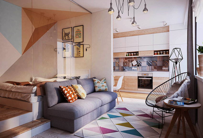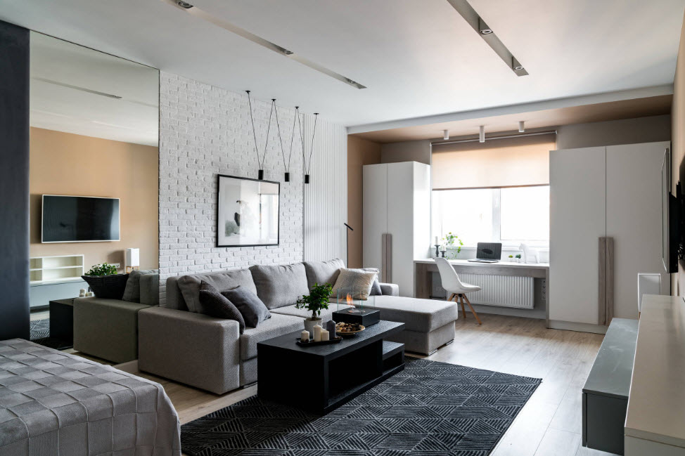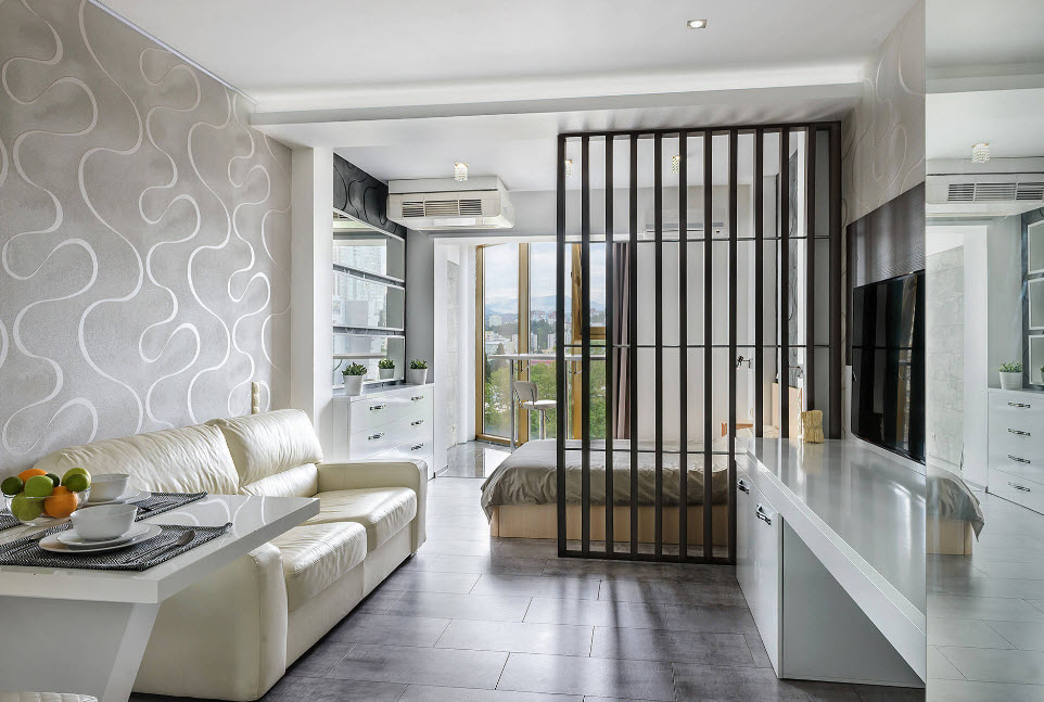 Интерьерное решение, пользующееся неизменной популярностью. Грамотно распределенная мебель и предметы декора позволяют сэкономить массу дефицитного пространства.