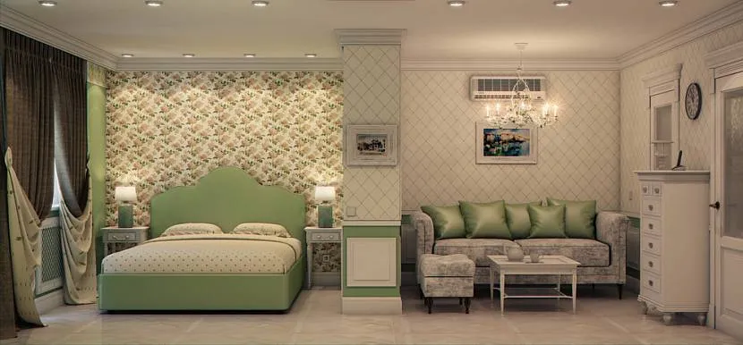 - зоны спальни и гостиной должны быть выполнены в едином стилевом решении;