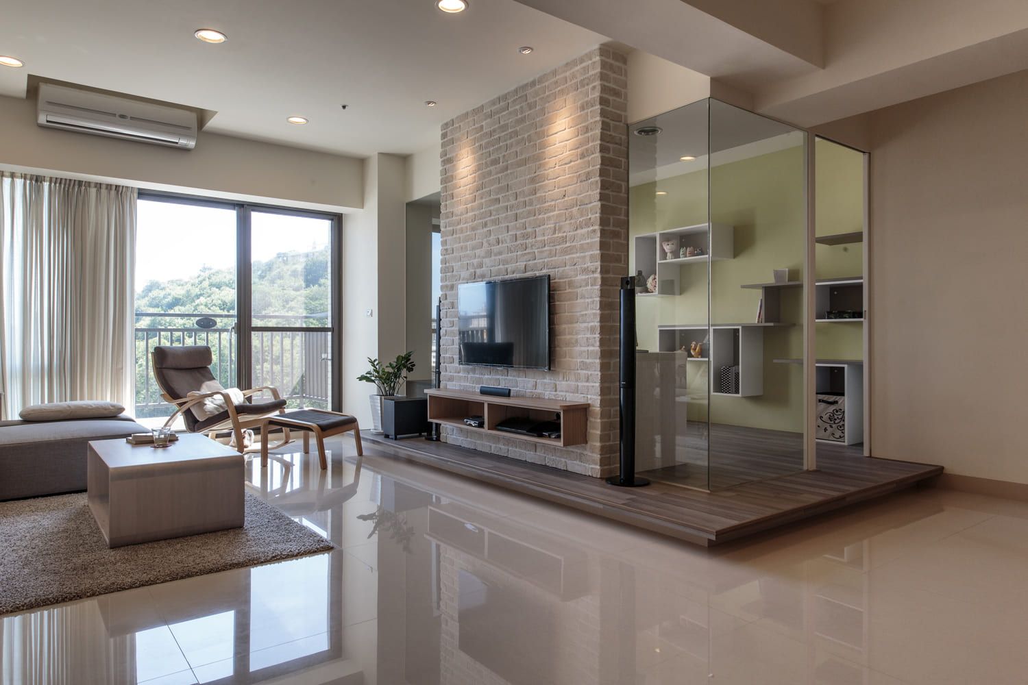Такое необычное решение редко используется в современном дизайне спальни и гостиной в одной комнате, поскольку оно является самым затратным и сложным в реализации. Но такое зонирование в последнее время становиться все популярнее и популярнее. Все это благодаря ряду преимуществ: