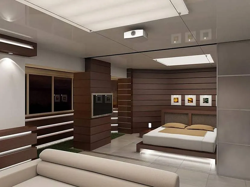 Гостиная и спальня в одной комнате: зонирование по высоте