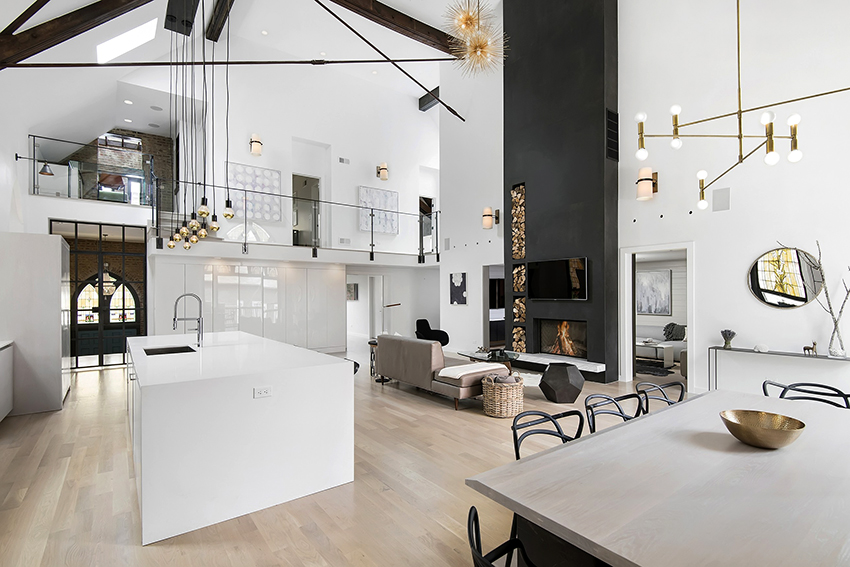 Высокий потолок и большие выразительные окна — все это черты индустриального стиля лофт