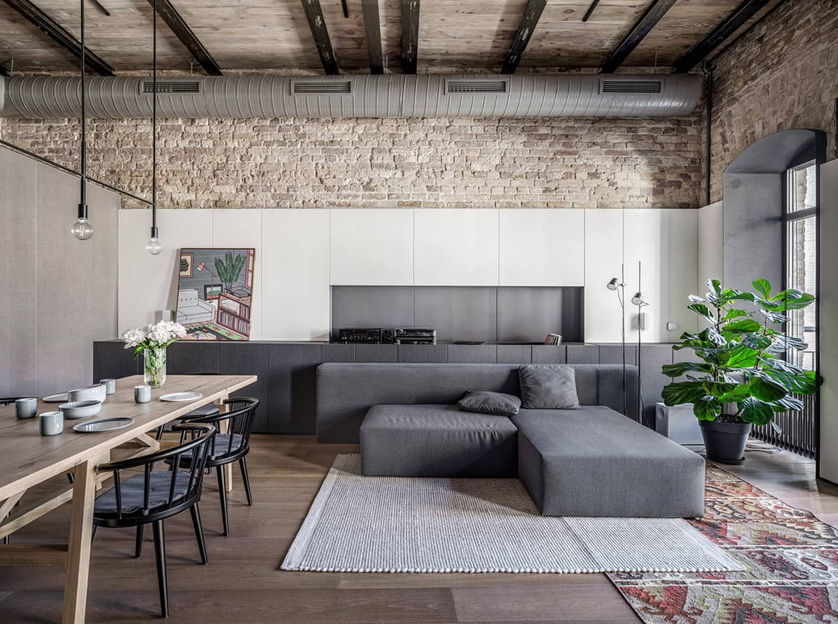 Коричневый и серый ‒ это классические цвета, используемые в стиле лофт
