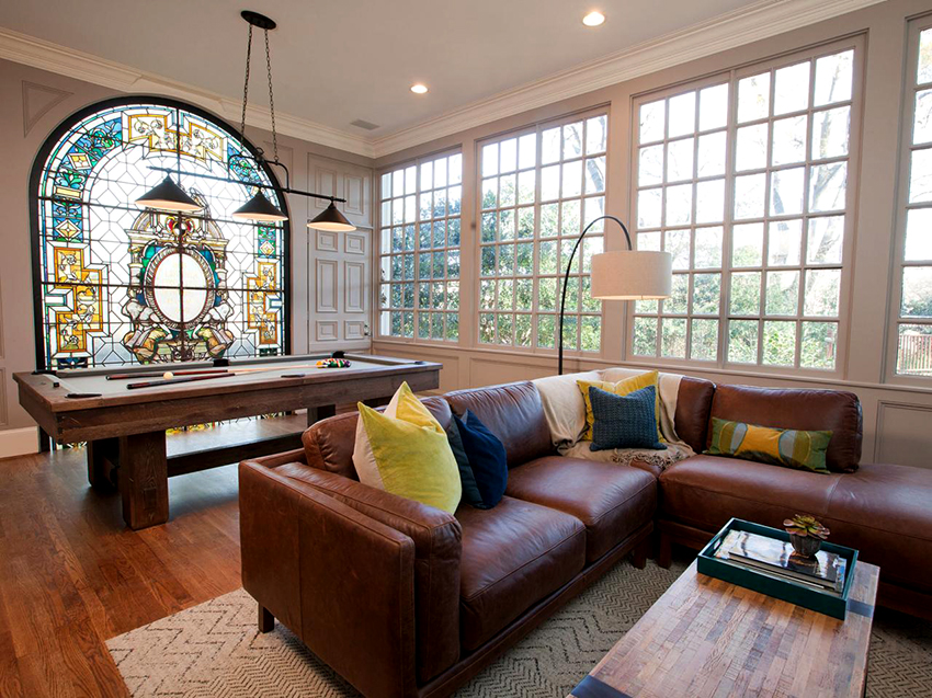 - Обязательно большие окна. Приветствуются арочные формы окон, размер которых должен быть максимально большим, чтобы наполнить пространство светом и легкостью.