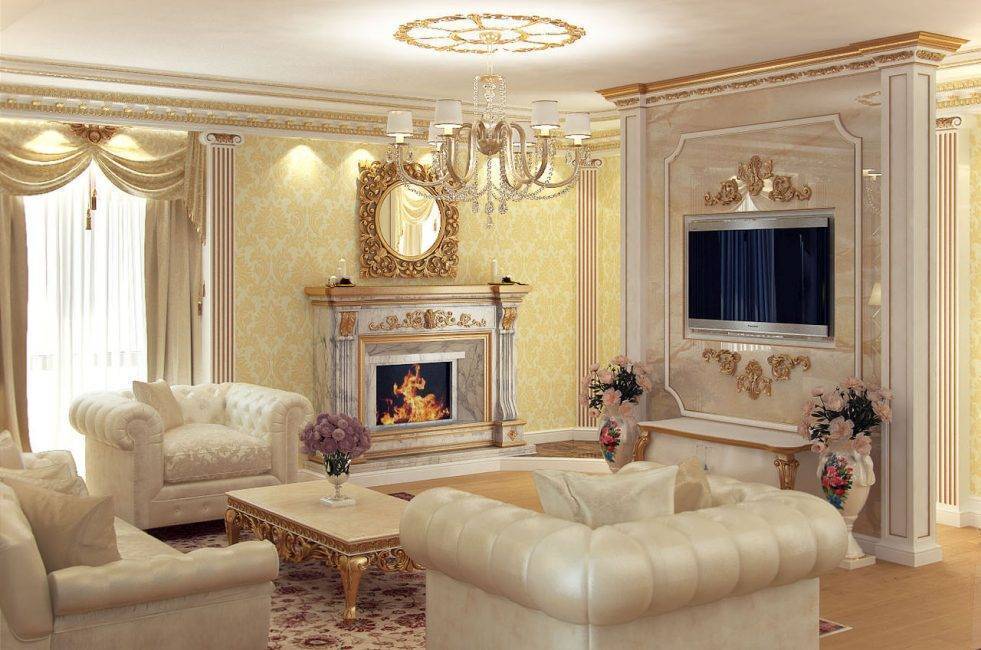 Обустроить гостиную в классике несложно, но очень дорого. Такой стиль зачастую выбирают зажиточные люди, способные потратить большую сумму на авторскую мебель из натуральных материалов и дорогую отделку с позолотой. Однако сотворить такое чудо возможно не только в частном доме, но и в городской квартире, причем даже туда удачно впишется камин. Запаситесь терпением и опытом дизайнеров, чтобы сделать в своем доме качественный ремонт, радующий ваш глаз.
