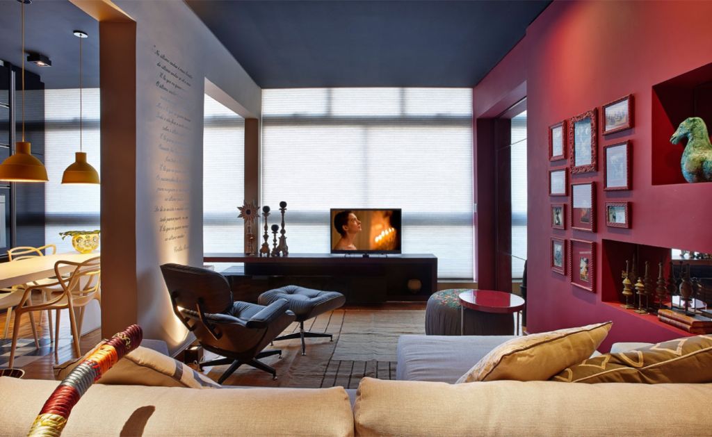 Подходит для завершения таких стилистических направлений как модерн, эклектика, английский. Для того чтобы помещение не смотрелось слишком вычурным, необходимо использовать палитру слегка приглушенных тонов: бордового, осветленного красного.