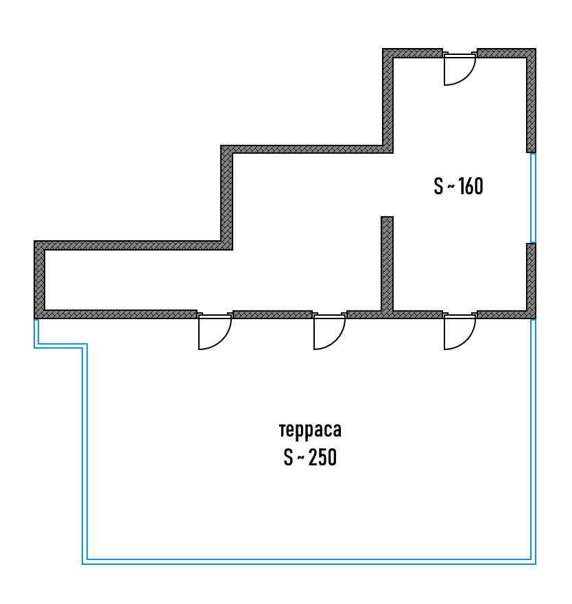 Студия 410 м²: общая площадь 160 м² и терраса 250 м². Это пространство для интерьерных идей дизайнера и собственника