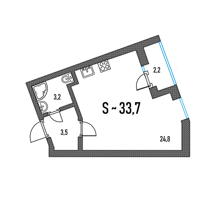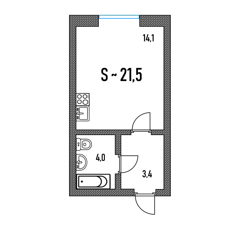 Метраж студий. 23—28 м².