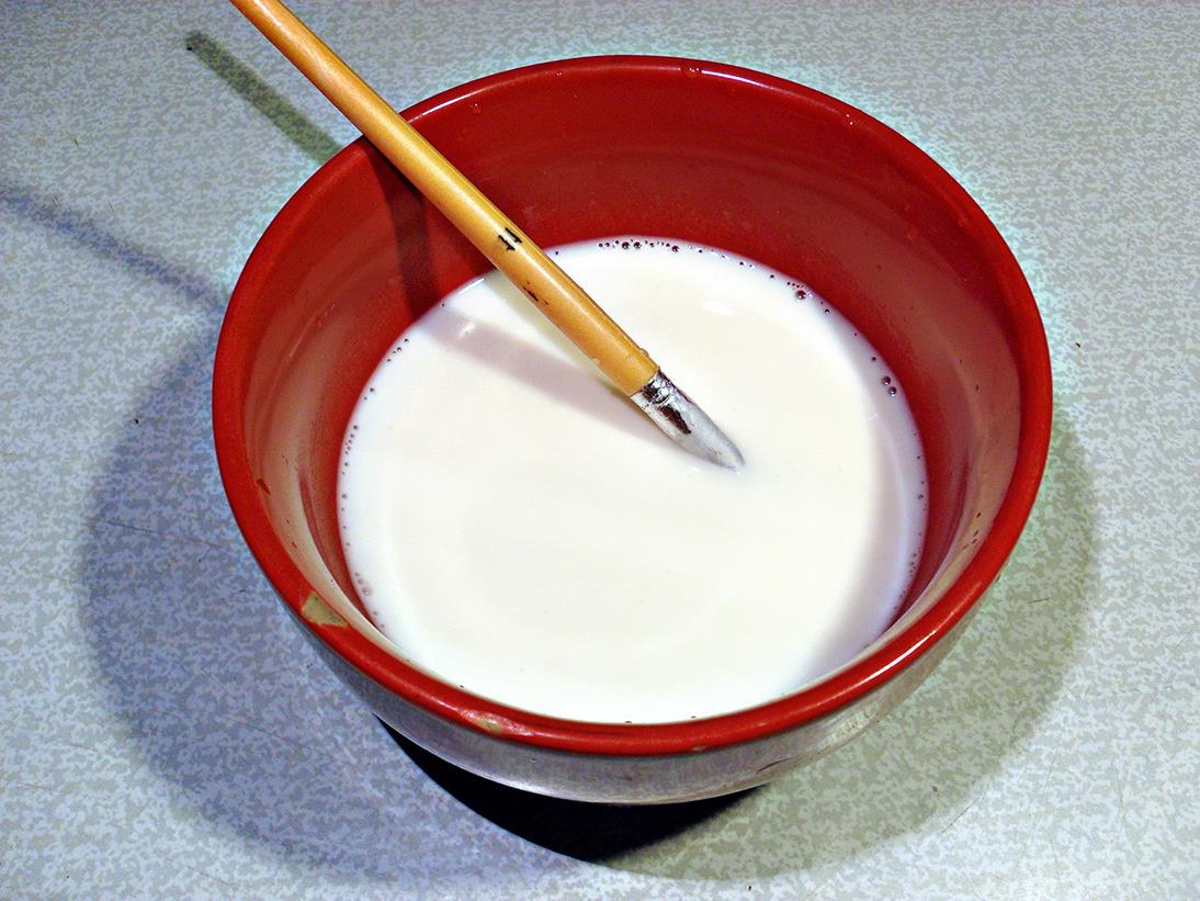 - Двести пятьдесят грамм сухого клея развести в пяти литрах холодной воды.