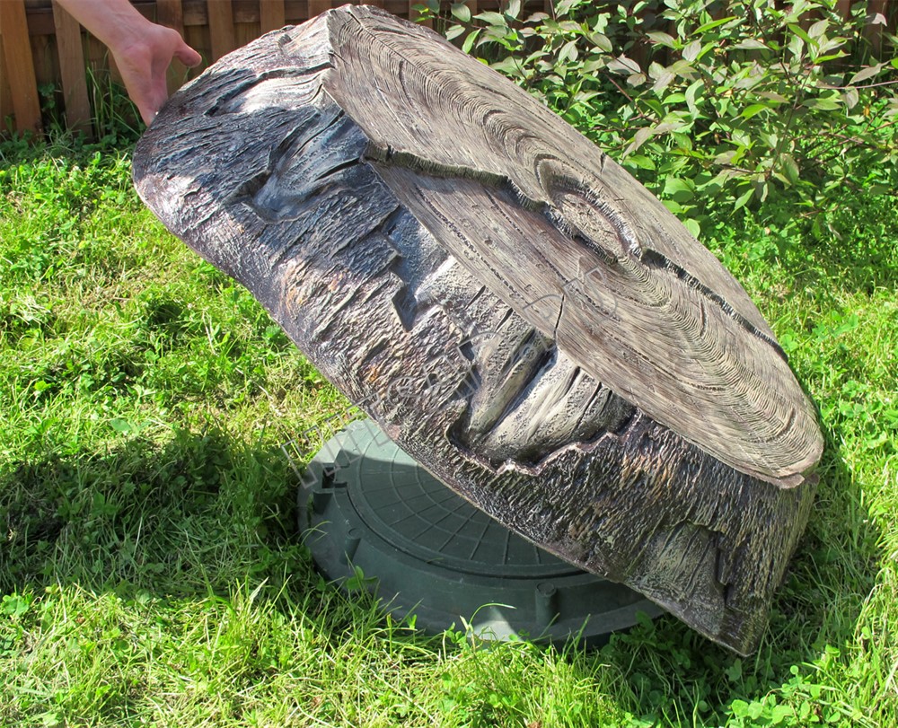 Пень для маскировки крышки В качестве маскировочного материала дерево прихотливо. Но при грамотной его обработке симпатичный элемент простоит не один год. В качестве вариантов можно использовать: