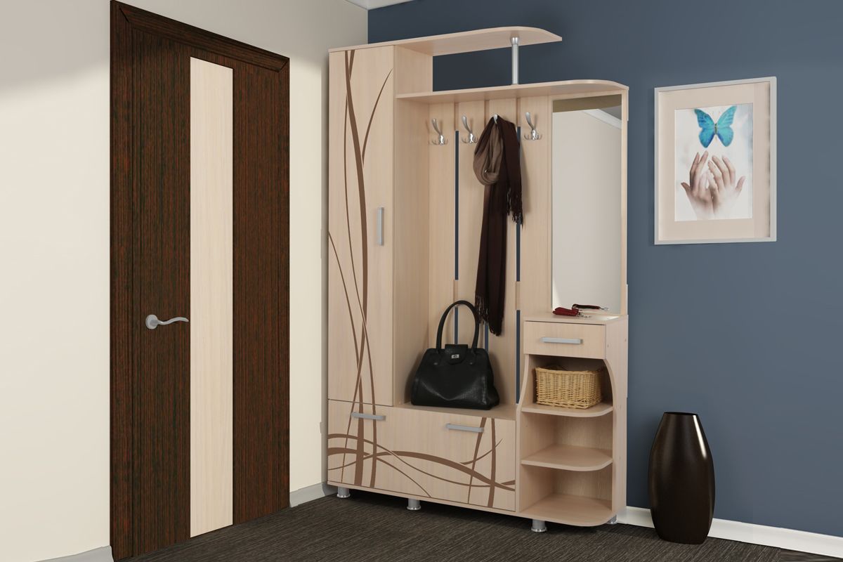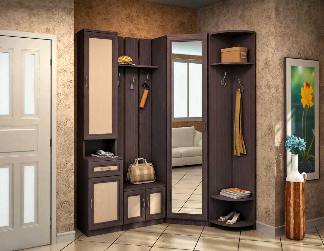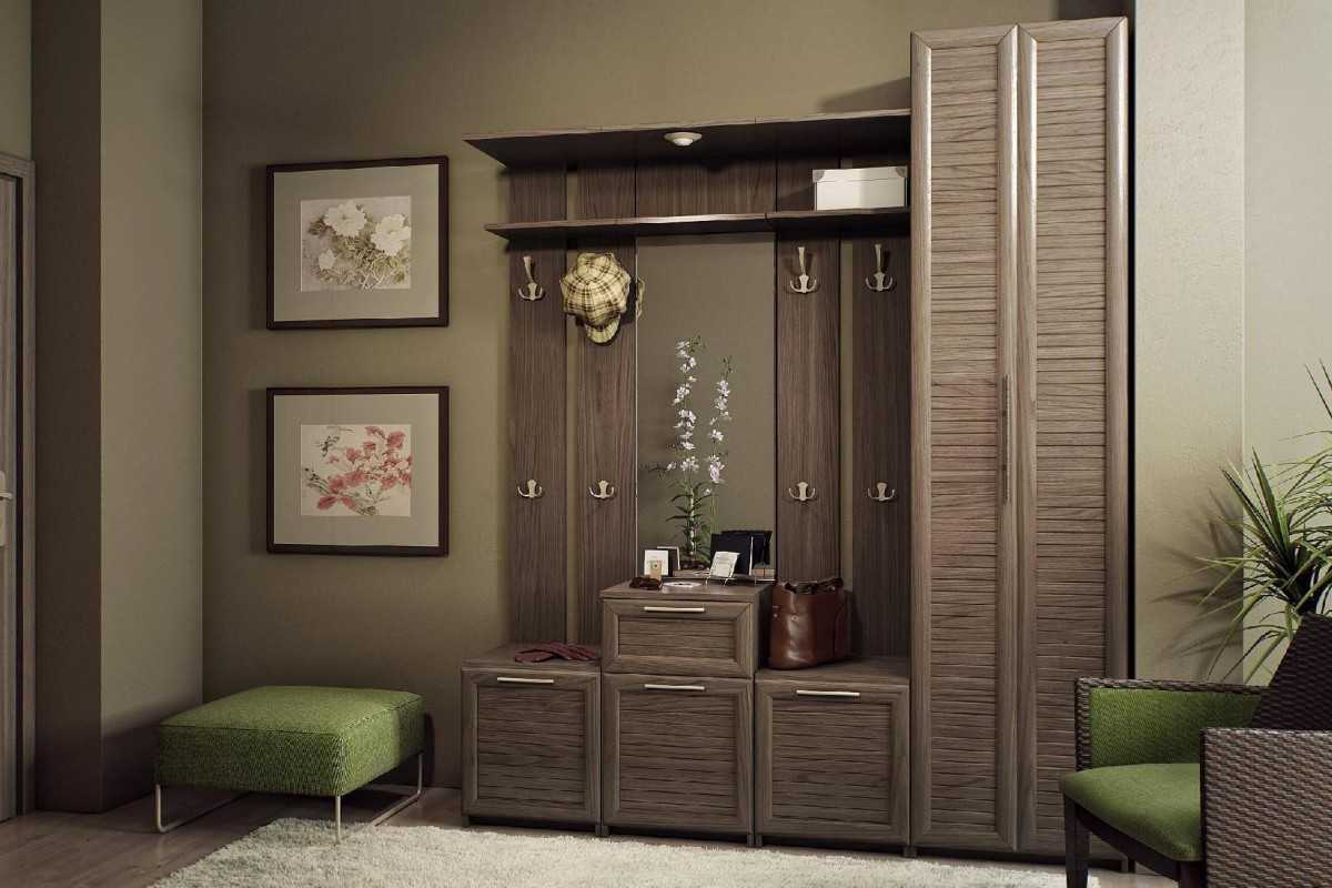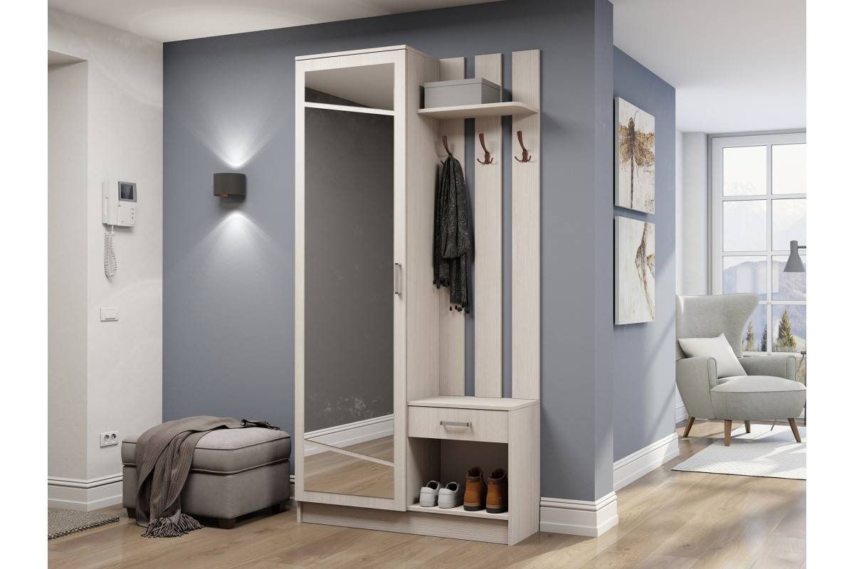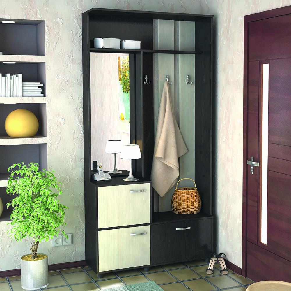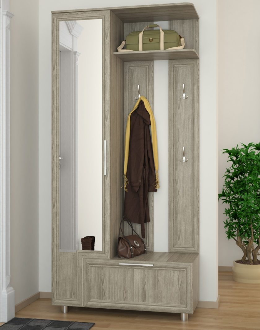 Такой вариант хорош для тех, кто предпочитает минималистские направления интерьера. Готовый гарнитур, состоящий из нескольких самостоятельных модулей, необходимо выбирать, исходя из размеров коридора. Для узких небольших помещений достаточно небольшой тумбы, зеркала на вертикальной подставке и вешалки для верхней одежды. Как вариант, можно найти небольшую модульную прихожую, дополненную компактным шкафом, где можно хранить зонты, перчатки и головные уборы.