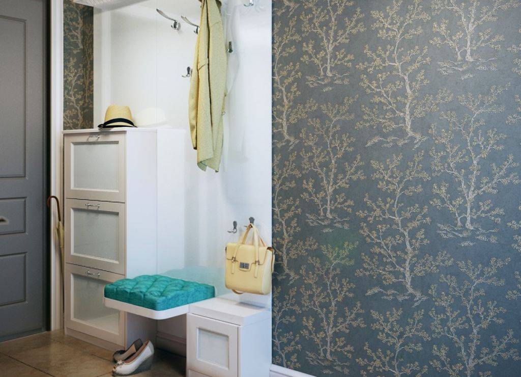 Классический вариант для небольшой прихожей это использованием обоев с мелким цветочным или геометрическим рисунком.
