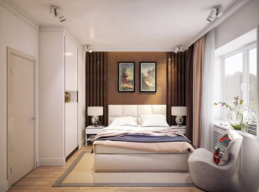 Дизайн маленькой спальни 12 кв.м: фото интерьера и размещение мебели