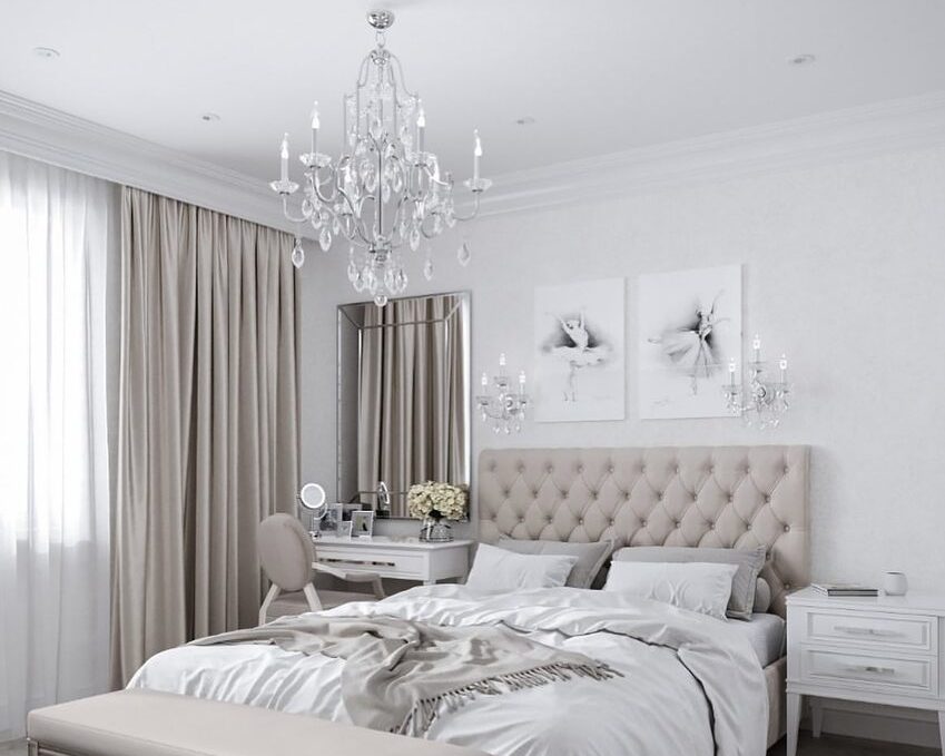 Глянцевый вариант станет отражать предметы, находящиеся в спальне, что визуально будет создавать ощущение чрезмерной перегруженности в интерьере. Поэтому стоит отдавать предпочтение матовым белым поверхностям.