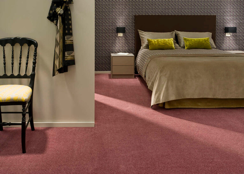 При использовании ковра нужно выбирать текстиль, совпадающий по цвету с ведущим оттенком в интерьере или полностью закрывающий пол в комнате. В противном случае ковер будет разделять пространство, визуально скрадывая площадь.