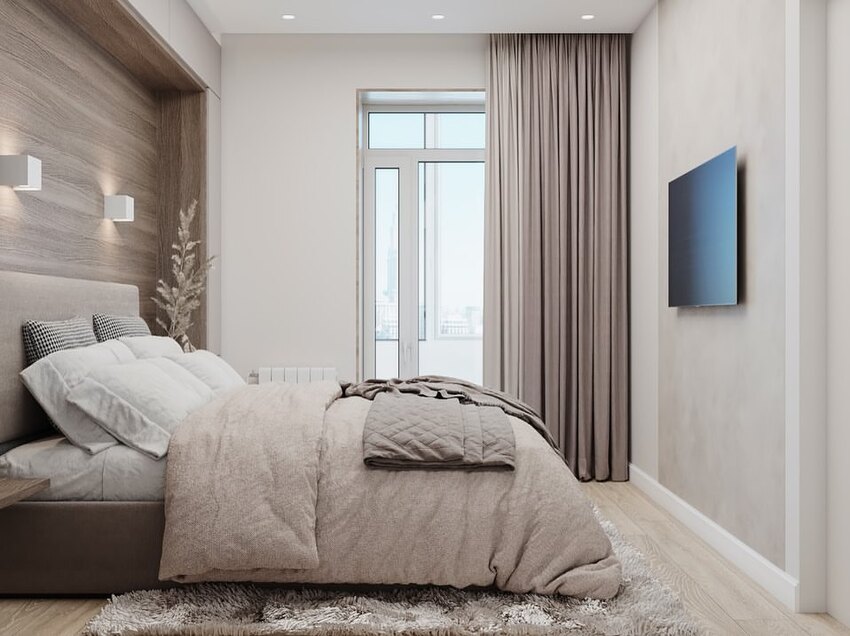 Все действия направлены на максимально возможное поступление естественного света в спальную комнату. При возможности можно провести реконструкцию оконного проема, заменив стандартное окно на панорамную модель.