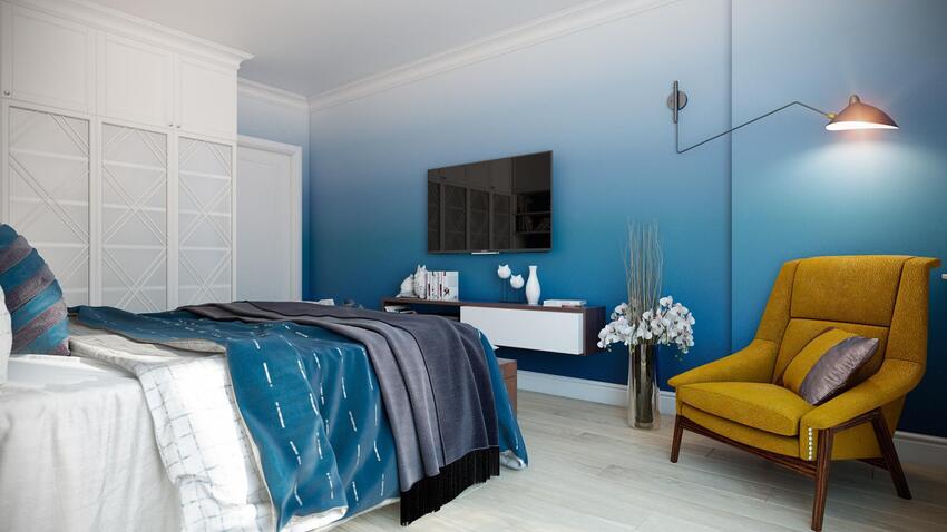 градиент: у потолка должен находиться светлый цвет, ближе к полу он должен постепенно темнеть, таким образом можно увеличить высоту стен.