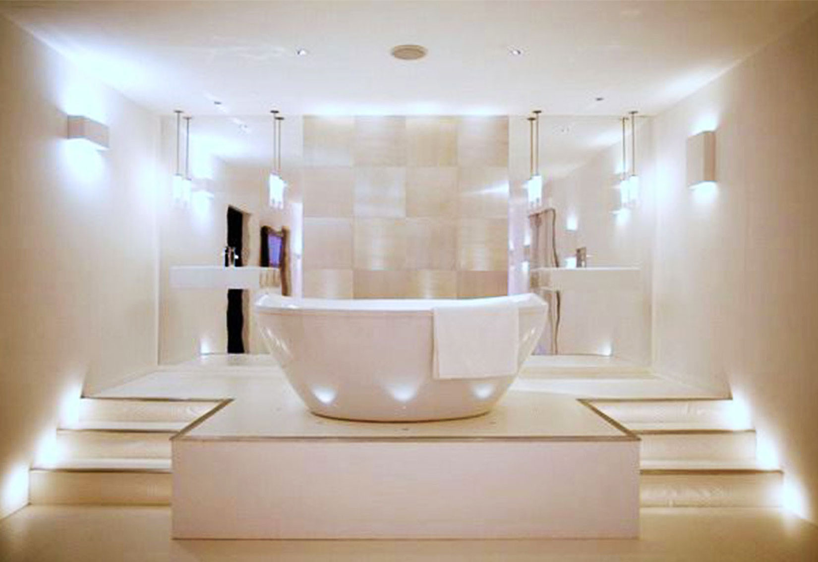 Декоративное освещение в ванной комнате также очень важно и не столько с точки зрения дизайна, сколько с точки зрения комфорта. Именно благодаря легкому и не яркому декоративному освещению, ночные походы в ванную комнату не заставят полностью проснуться, особенно если недосып стал нормой