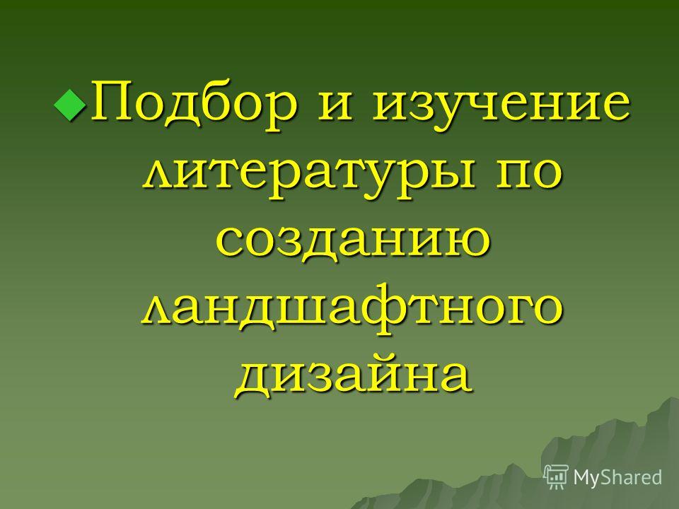 Подбор и изучение литературы по созданию ландшафтного дизайна Подбор и изучение литературы по созданию ландшафтного дизайна