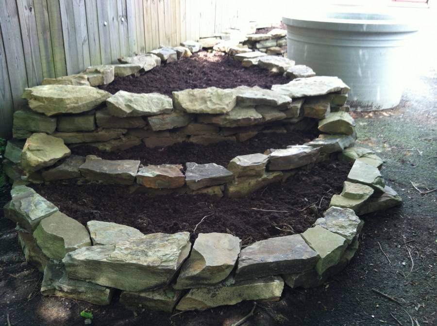 Как сделать клумбу из камней своими руками, наглядно показано на пошаговых фото. Чтобы сооружение было крепким и нужной высоты, материал выкладывают друг на друга в несколько слоев.
