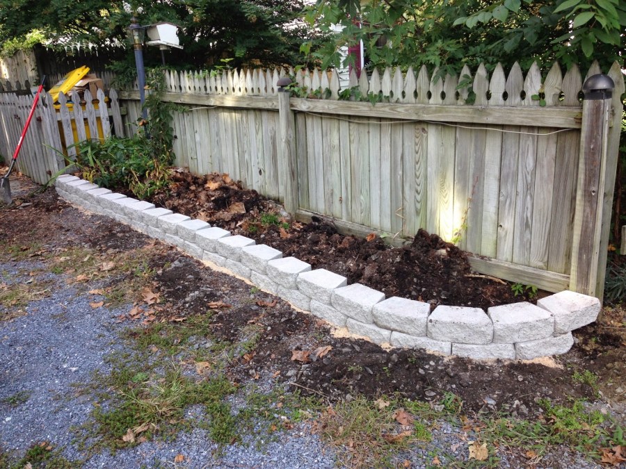Первым делом необходимо выложить фундамент. Взяв бечевку с кольями, отмечают подходящее место для формирования цветника. По отметкам выкапывают ров в глубину до 40 см. Ширина траншеи зависит от размера камней. Немного удаляют верхний шар земли. Траншея для будущего цветника может быть разной формы, но чаще всего ее делают прямоугольной На дно углубления кладут кусок рубероида или полиэтилена. Сверху заливают бетонный фундамент. Когда заливка хорошо застынет, можно сверху выложить камни. Вместо бетонного фундамента, выкопанную канаву сразу же застилают геотекстилем, сверху засыпают песком