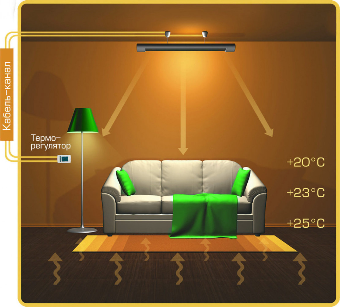 Потолочные обогреватели не оснащены термостатом по двум причинам: