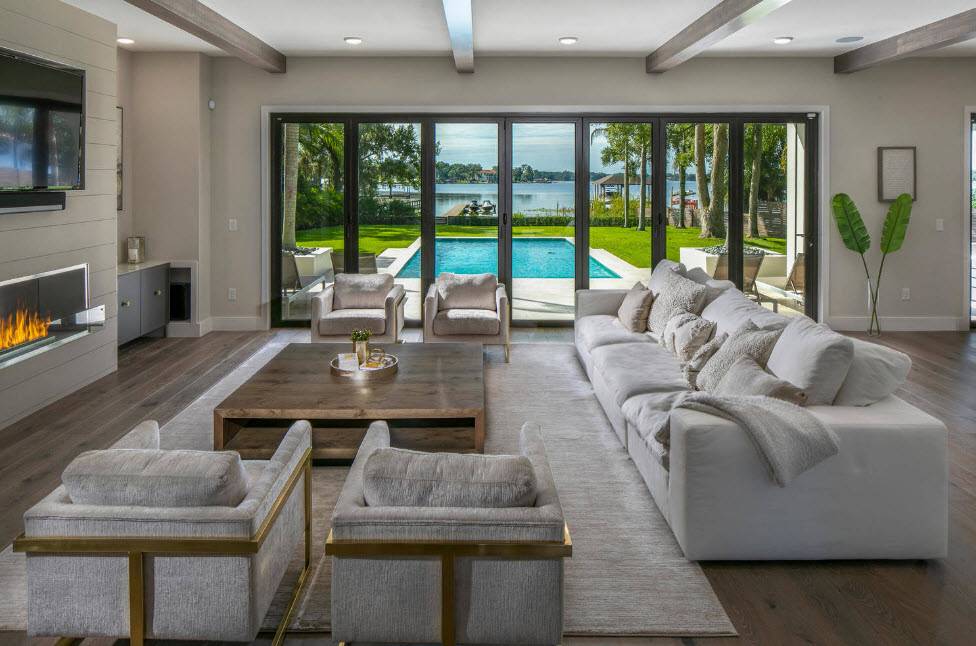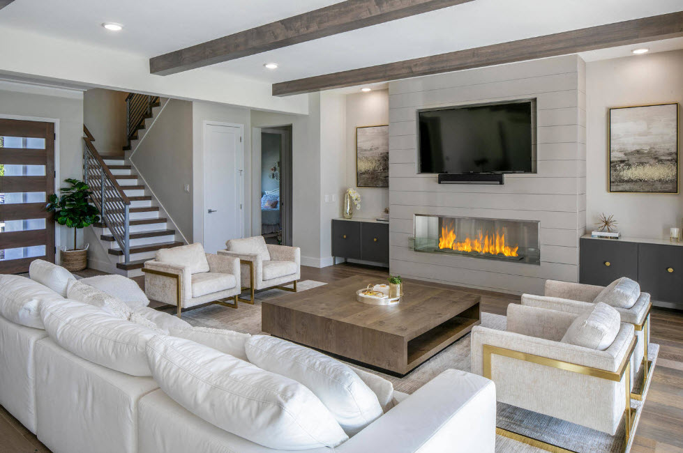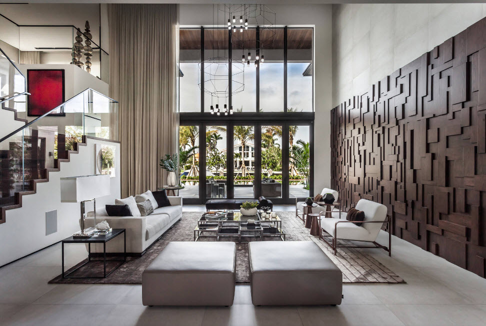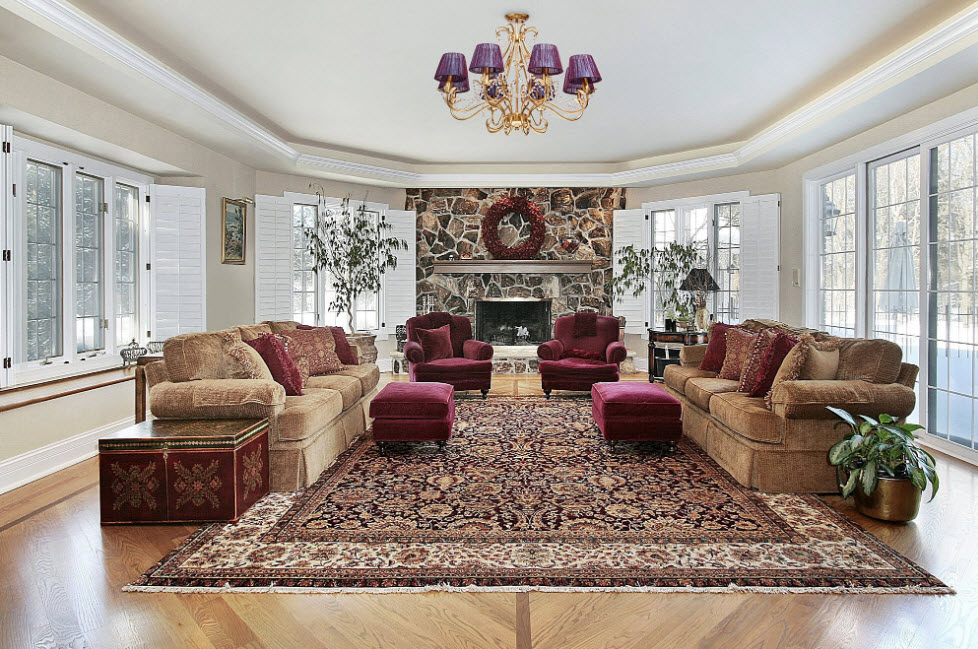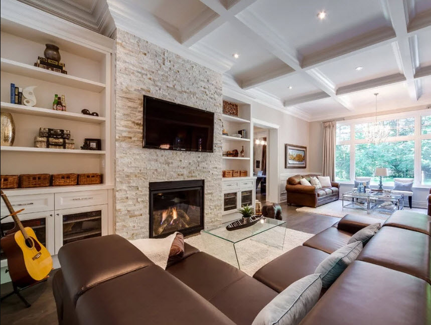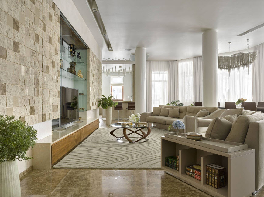 В последнее время популярно использование натуральных материалов и экологически чистых интерьеров, поэтому обратите особое внимание на древесину и натуральный камень. Деревянные панели создают уютную и комфортную обстановку, при этом интерьер большой гостиной будет не только натуральным, но и достаточно живым, интересным и привлекательным