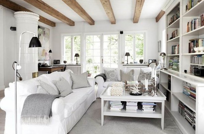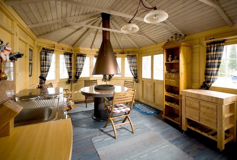 Главный материал дачи – дерево. Его должно быть много, так как именно из дерева строится сам дом, делается отделка стен и подбирается мебель. На скандинавской даче преобладают натуральные и спокойные цвета, простые формы и… абсолютно нет рюшиков и безделушек.