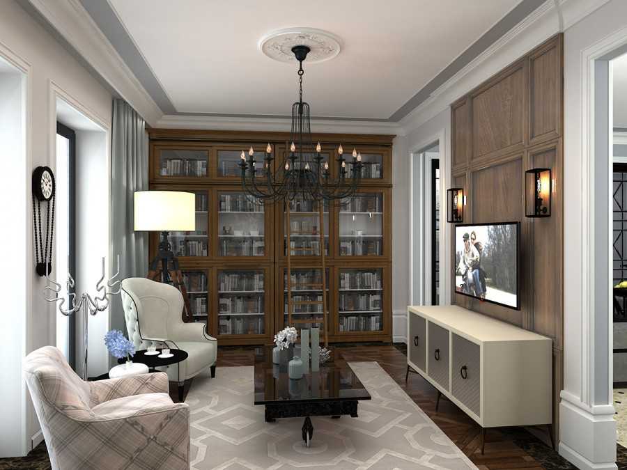 Классические залы будут современными при использовании встроенных шкафов, достаточно сдержанных элементов в декоре и трансформирующейся мебели. В таком интерьере обычно присутствуют простые поверхности, к которым легко подобрать несколько характерных деталей – пару вазонов или имитации колонн, панно в рамах или роскошную люстру.