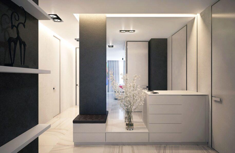 Небольшой современный коридор в правильных пропорциях. Современный дизайн коридора: