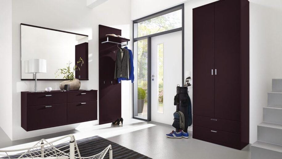 Выбранная мебель должна сочетаться со стенами – быть того же или близкого оттенка. Самостоятельно, без помощи дизайнера, расставлять акценты с помощью шкафом и стульчиков сложно. Как цветовые пятна в этом случае лучше использовать одежду, обувь и коврик.