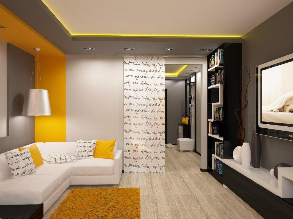 Полноценную гостиную в малогабаритной квартире можно сделать, забрав площадь у другого помещения (например, кухни или балкона). Проекты совмещенных комнат получили огромную популярность, их можно найти в огромном количестве. Самая большая сложность состоит в демонтаже перекрытий и последующей отделке. Но зато после такого ремонта получается красивая и функциональная гостиная.