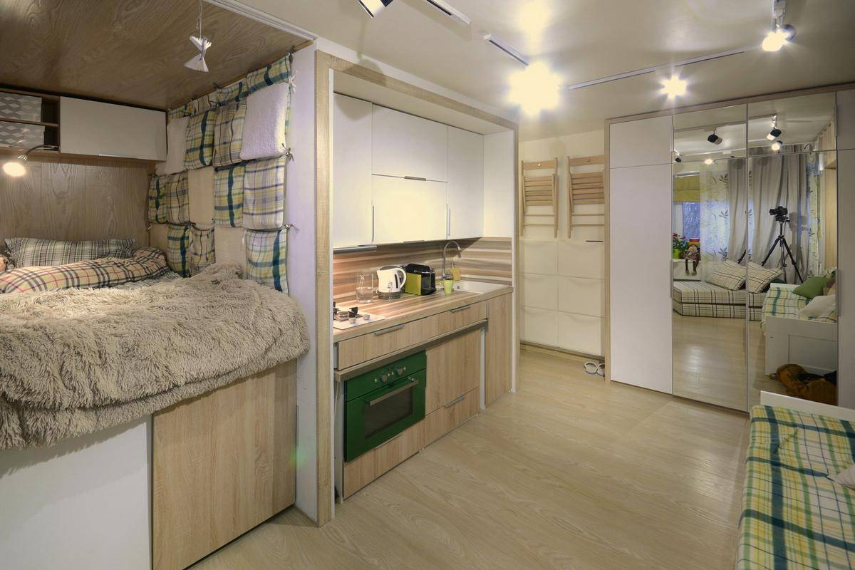 Дизайн квартиры-студии 20 кв. м. требует обеспечения максимума функциональности на небольшой территории. При этом помещение не должно восприниматься загромождённым. Также полезными будут приёмы, зрительно расширяющие помещение.